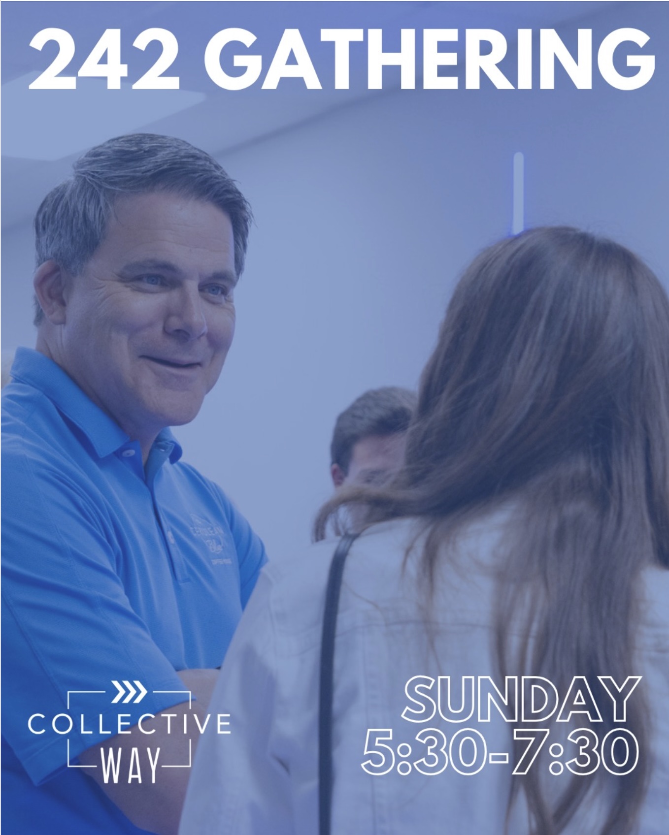 The 242 Gathering (Acts 2:42) is a gathering over great coffee, conversation, and unmatched community. We share life, scripture, and prayer together each week. This is one of my favorite expressions of the body of Christ. This is definitely a "come as you are" get together--all are welcomed. It's a place where God is meeting spiritual, physical, and emotional needs of all who gather.